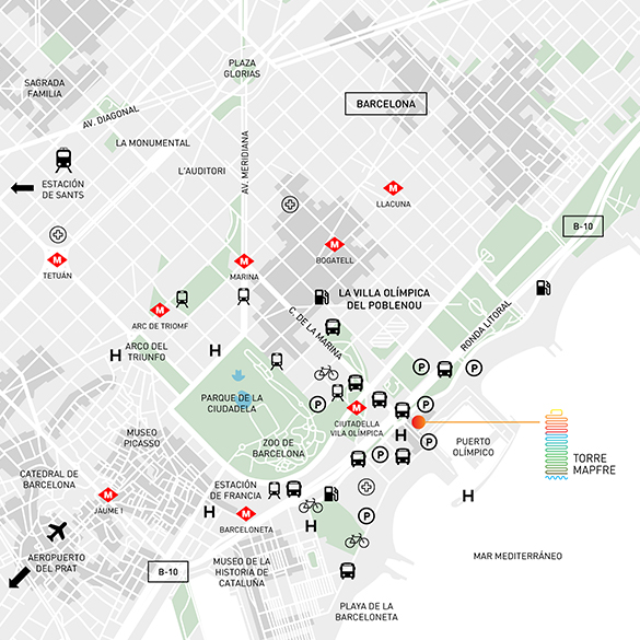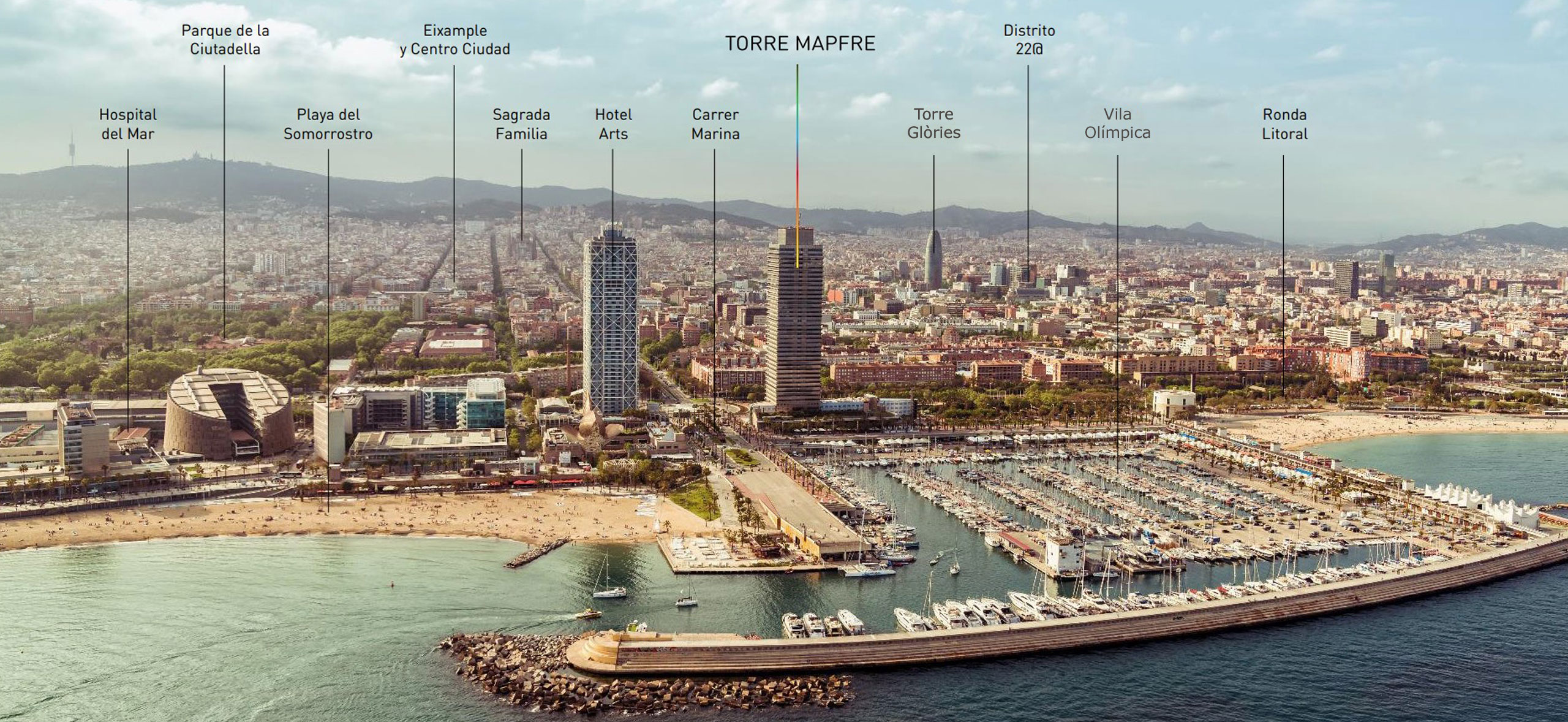 TORRE MAPFRE has the privilege of a fantastic location in the heart of the Olympic Village, just moments from the city’s historic center. Every imaginable form of public transport can be found within meters, beaches and some of the best nightlife and afterwork scenes in Barcelona.